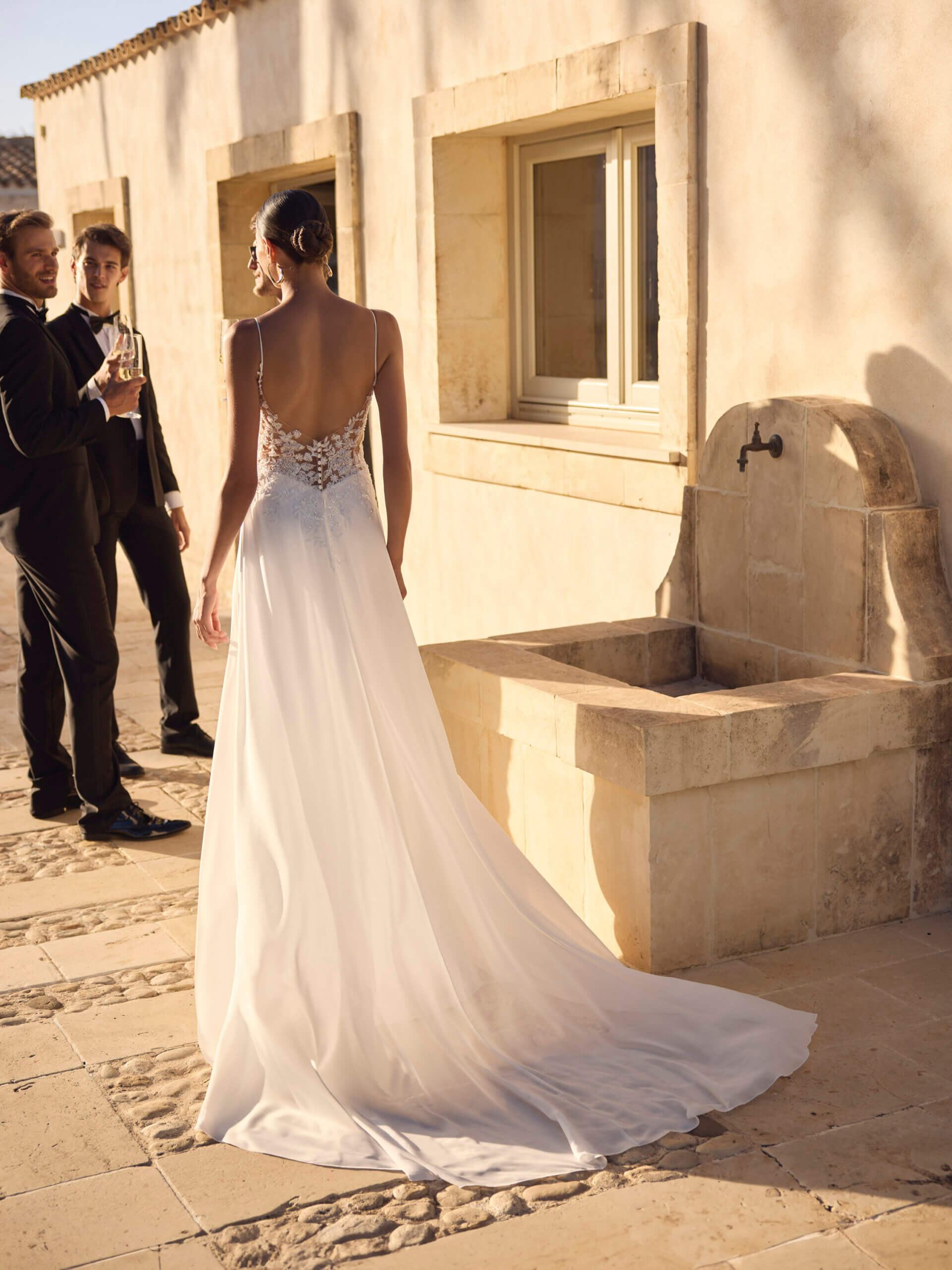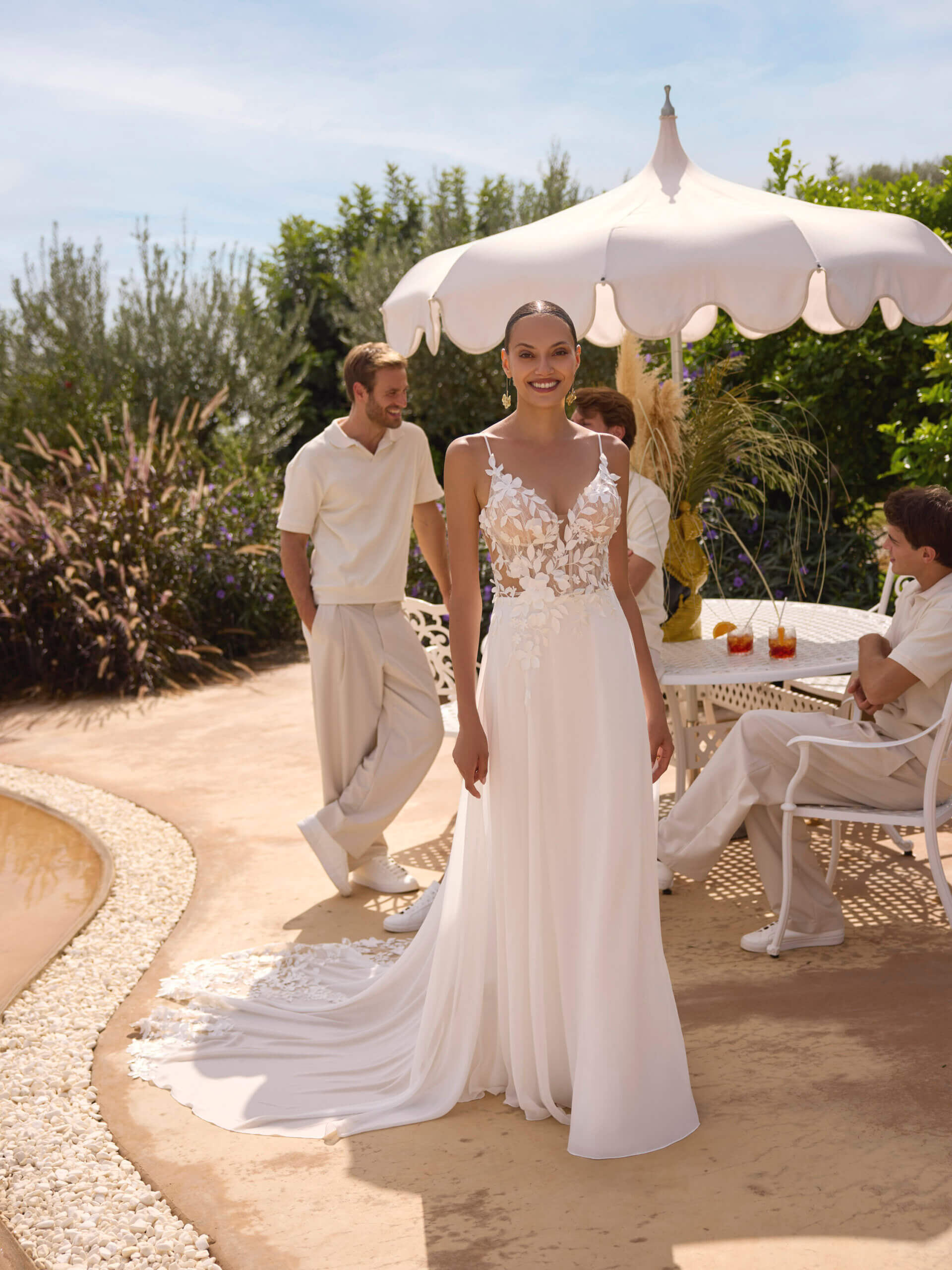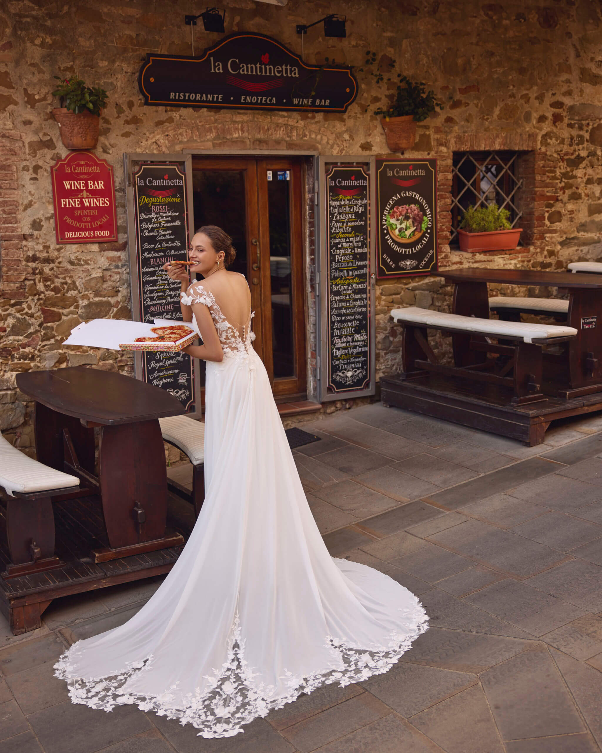 Une robe de mariée simple qui se caractérise par le style bohème.