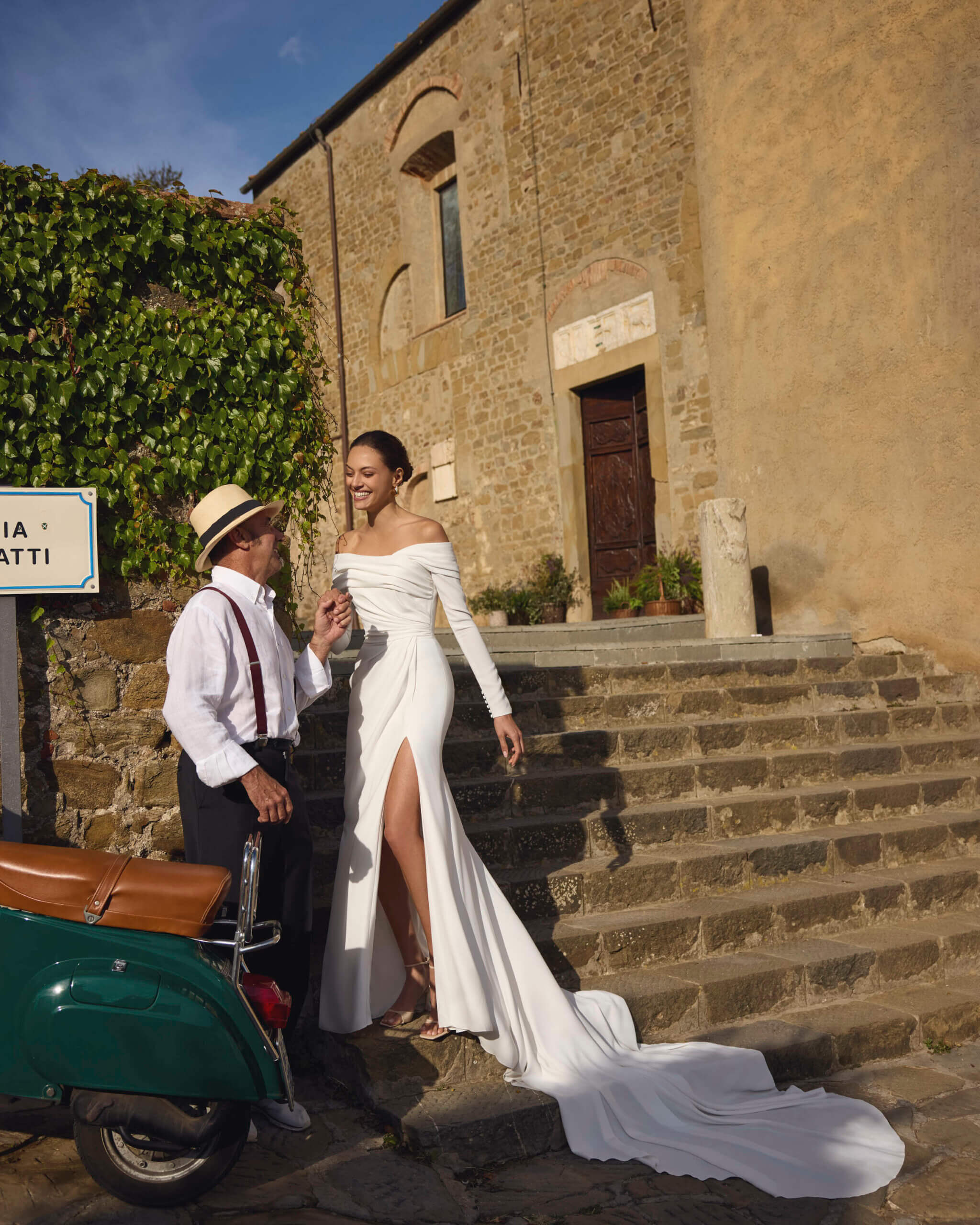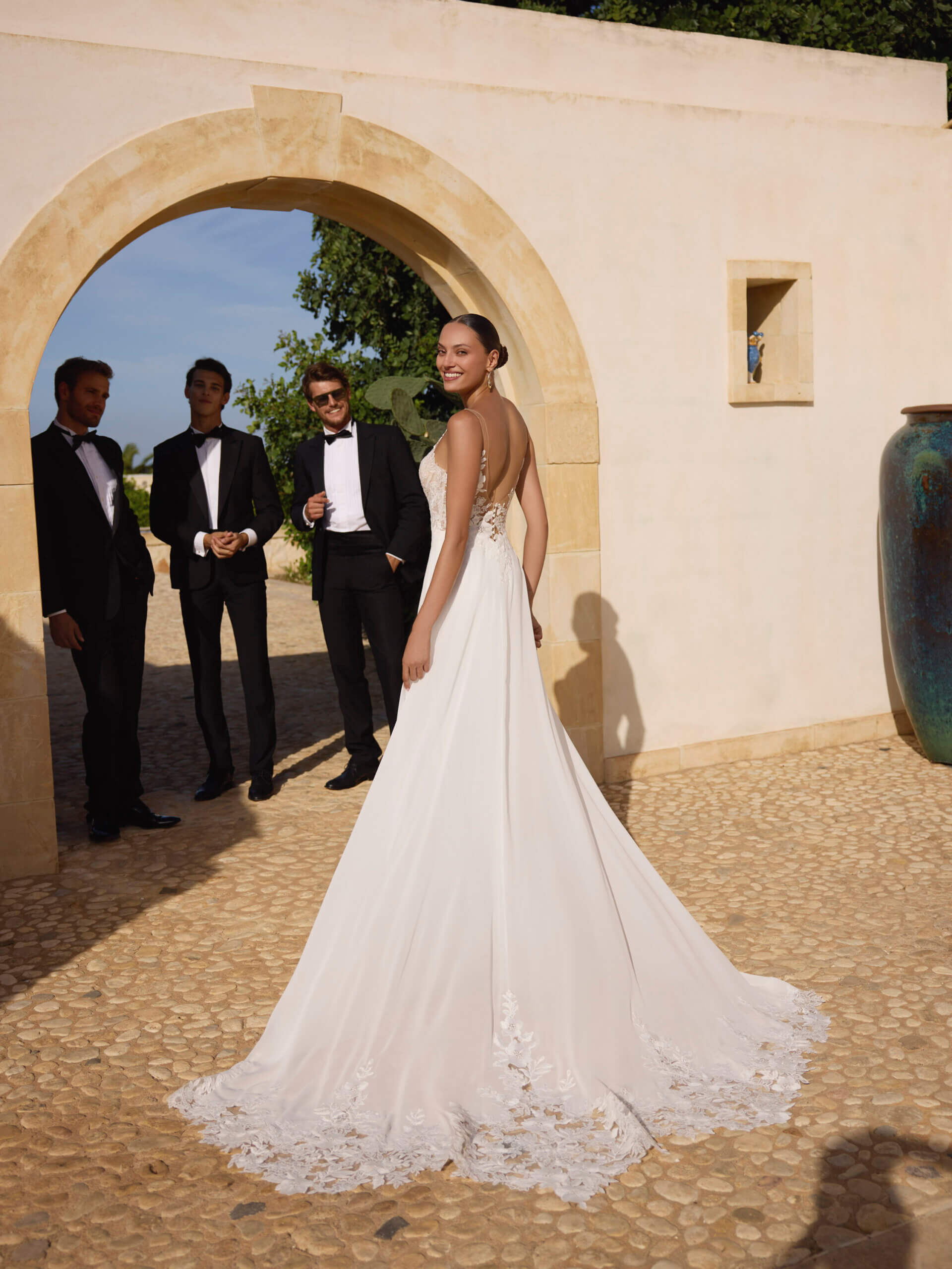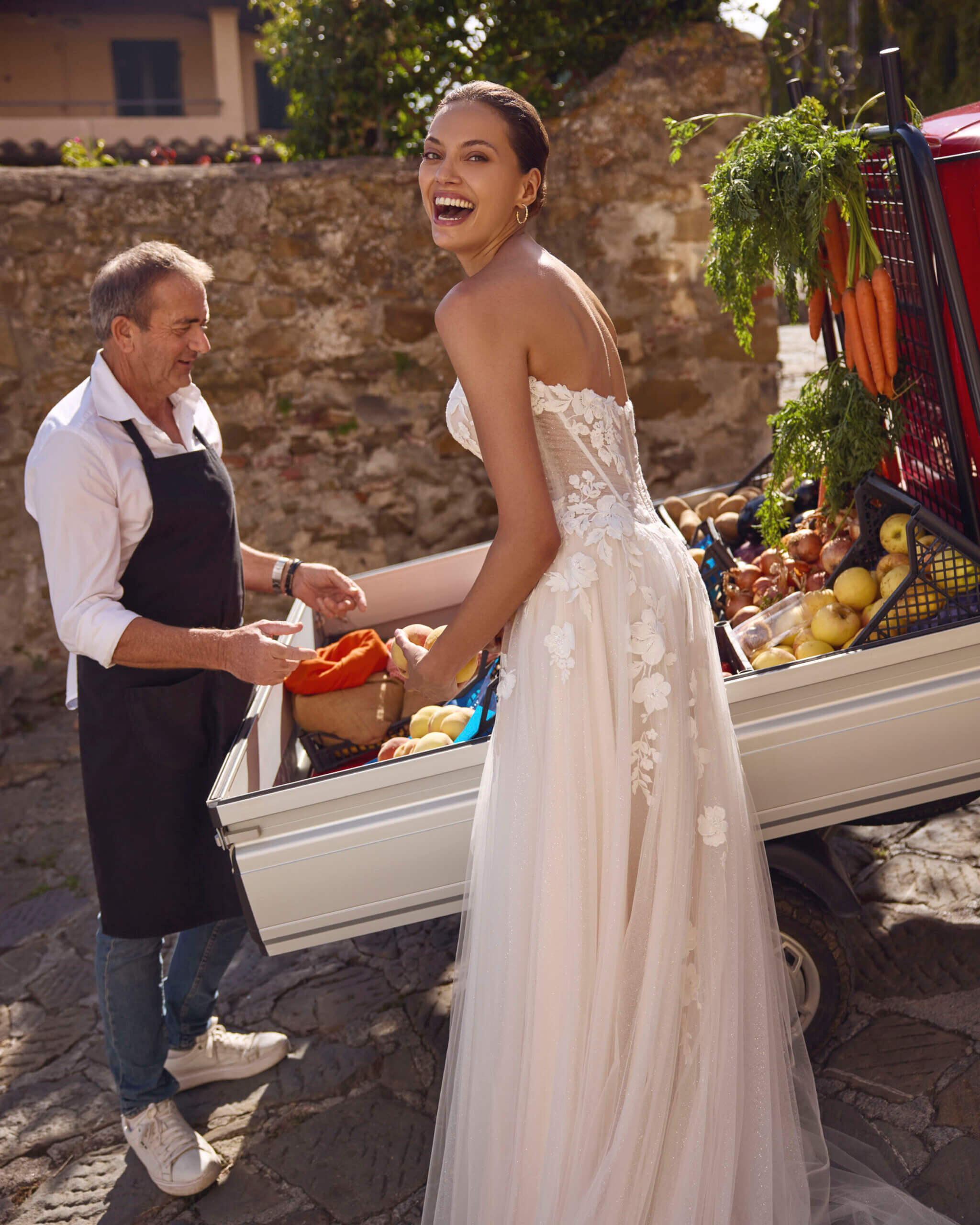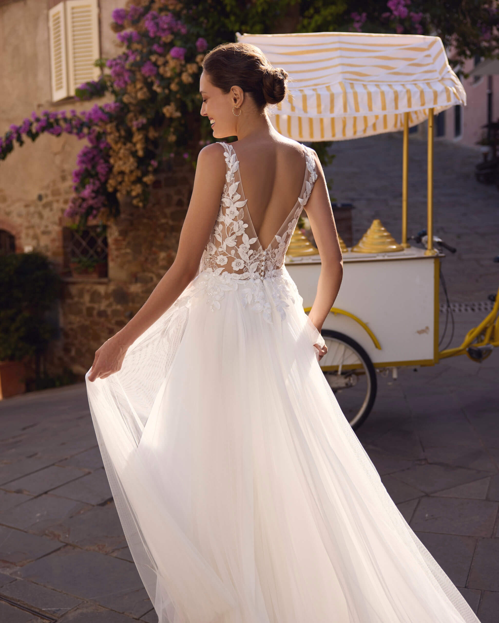Une robe de mariée simple qui se caractérise par le style bohème.
