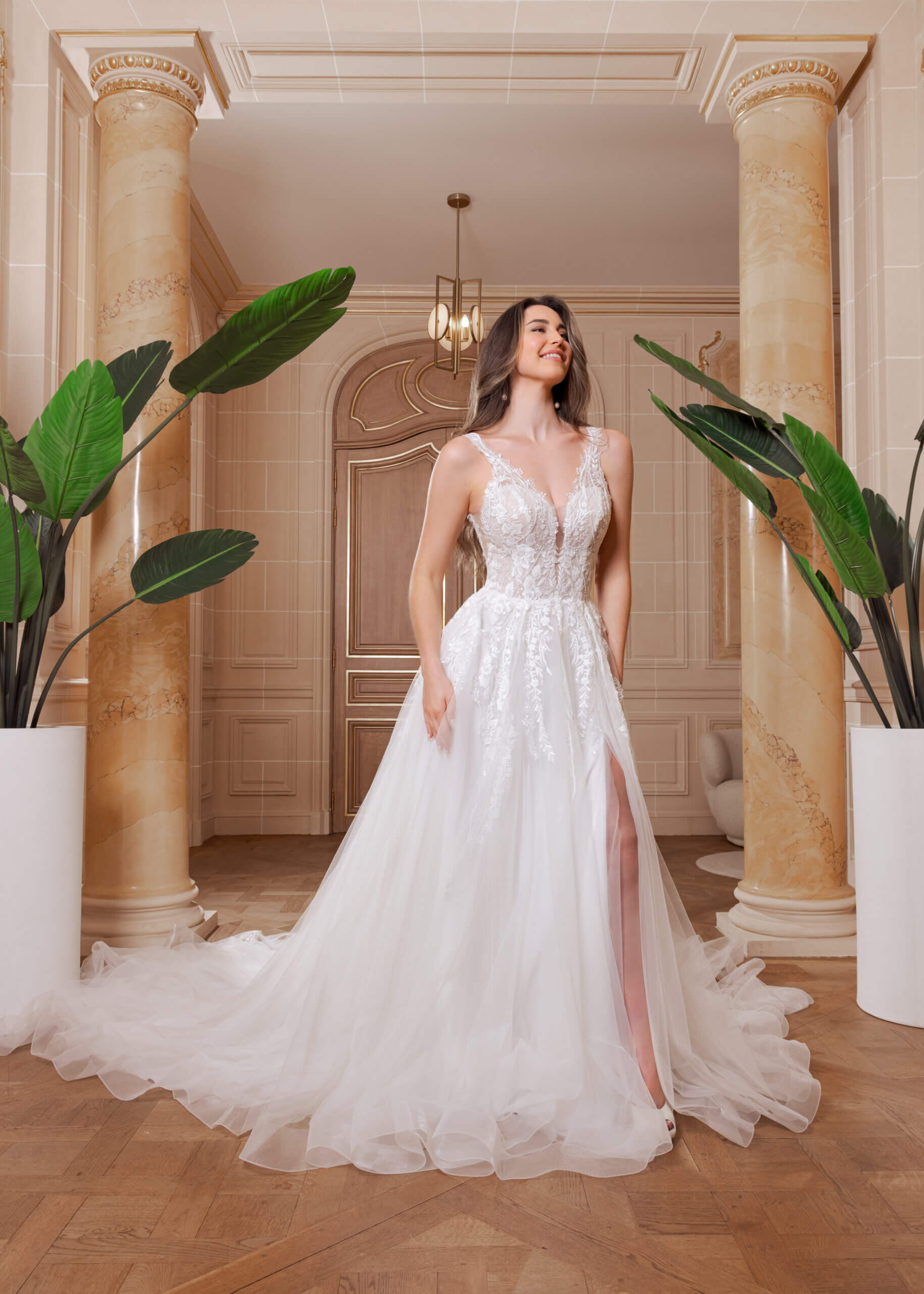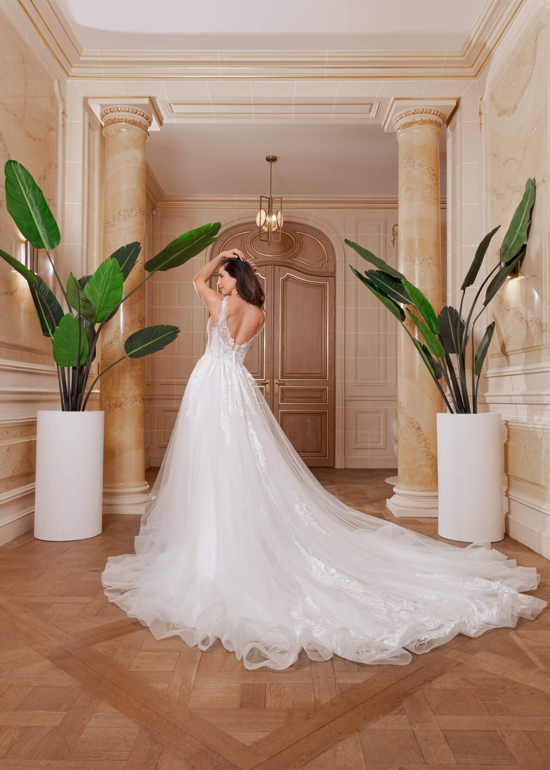Une robe de mariée simple qui se caractérise par le style bohème.