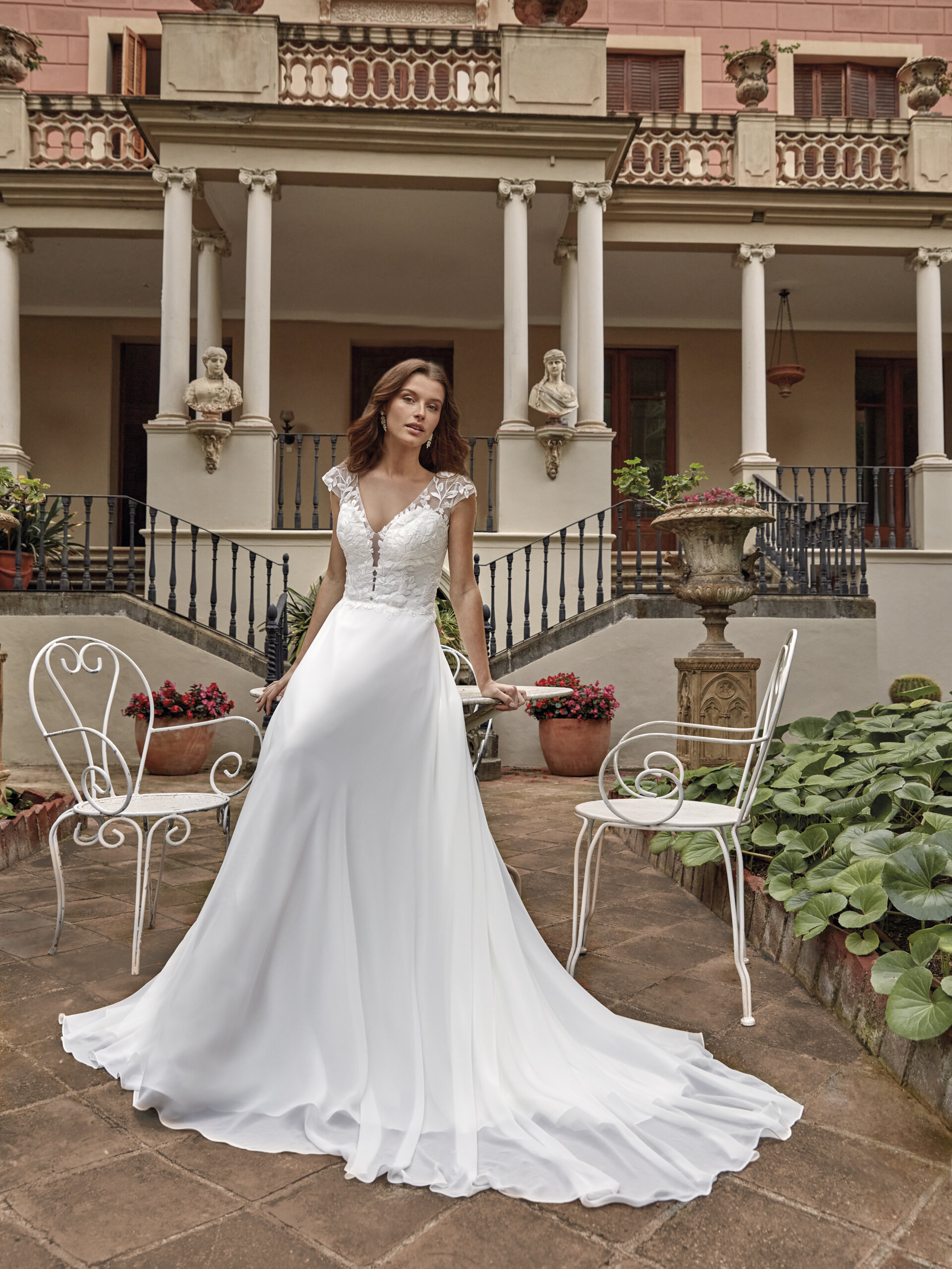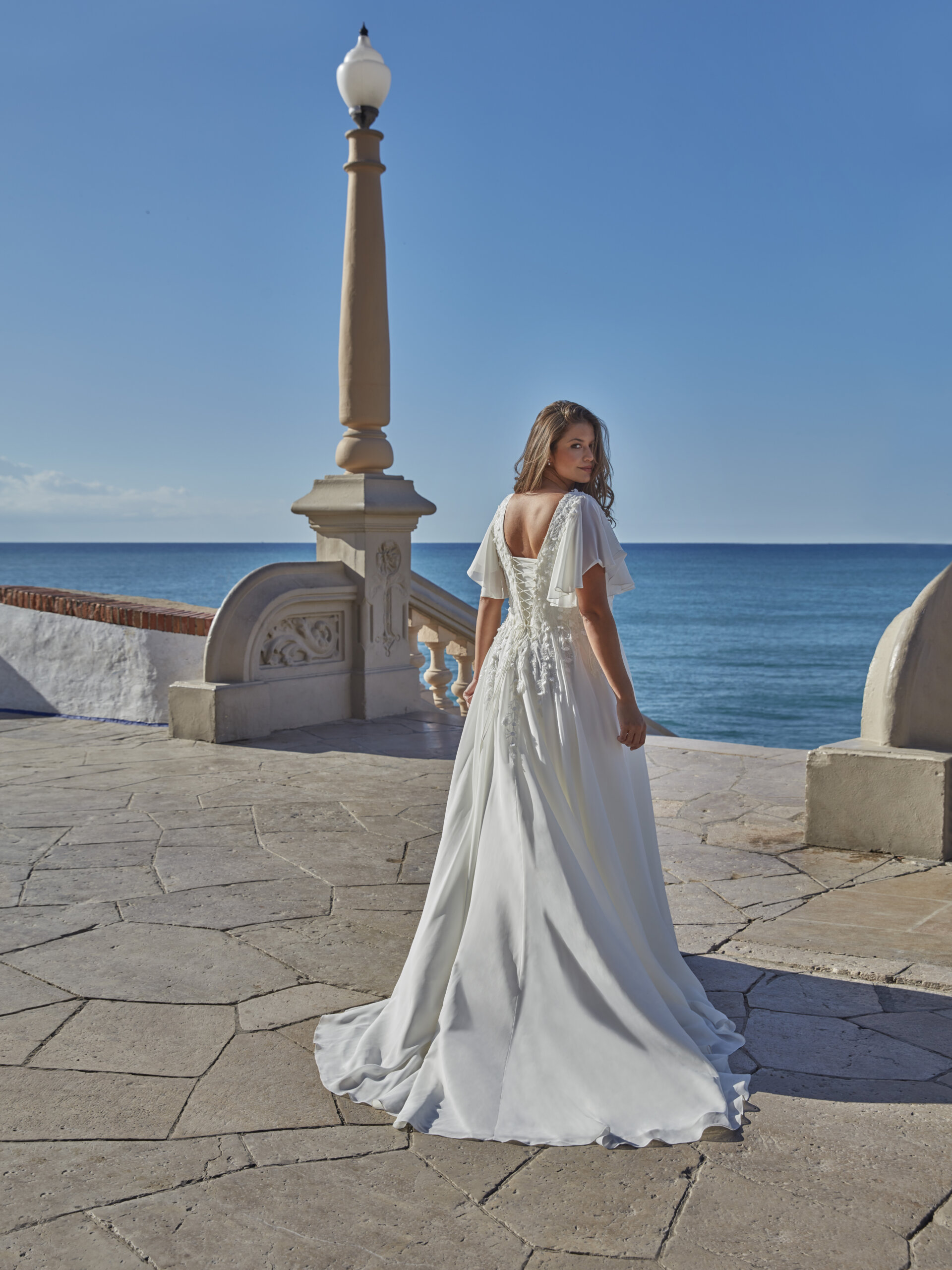 Une robe de mariée simple qui se caractérise par le style bohème.